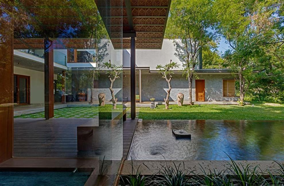 The 16,000 sft site of the Krishnan house had several existing trees and we envisioned a relatively low-slung architectural expression that would be interpretive of a vernacular aesthetic, while accommodating its green surroundings.