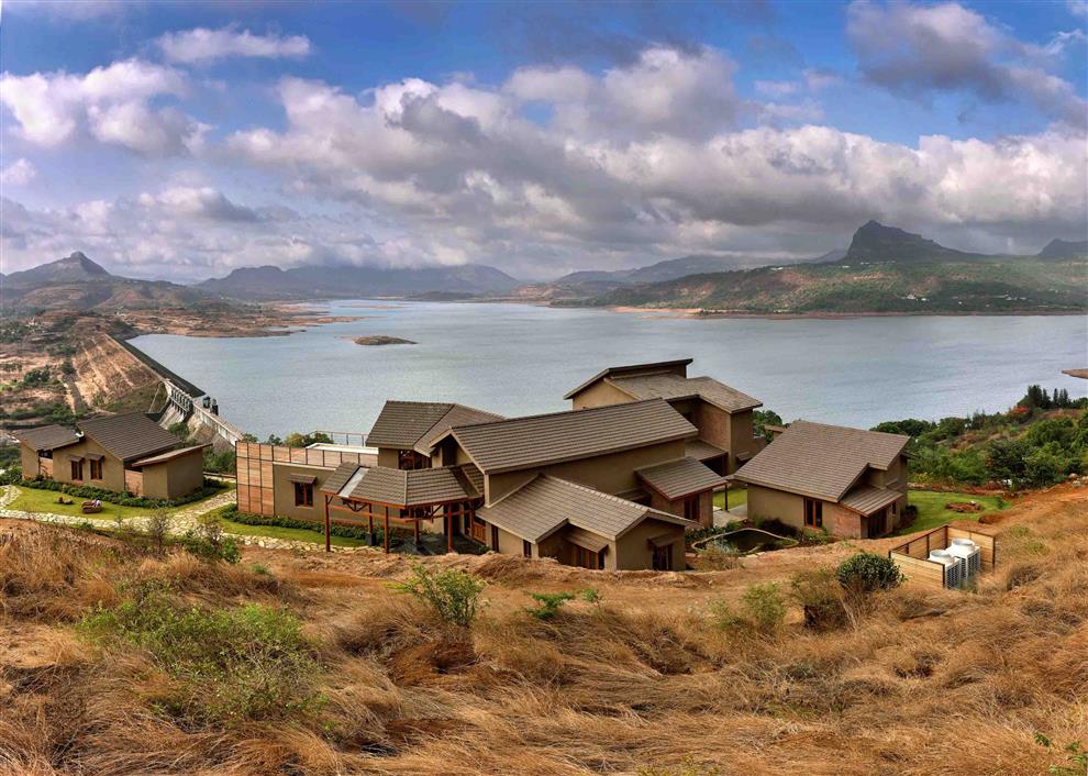 Famous for its captivating vistas, Pavana is as much a getaway as it is a pristine landscape – landlocked by the Sahyadris, crowned and guarded by three forts. The lake, a man-made marvel, held back and contained by a towering dam plays host to a wide gamut of activities throughout the year – an emerging hotspot for tourists and nature lovers alike. The family of four sought to discover a weekend retreat as well as a reprieve from the bustling life of the city, and hence ventured out in search of a tract of land that would not only capture the essence of the place but could also inspire, delight and satiate their creative endeavors. Snaking its way up a steep slope riddled with hairpin bends that overlook the range, the site rests as a proud marker – evocative and majestic, overlooking the shimmering lake in the distance. The house on top of the hill, reminiscent of the forts in the horizon, revels in its ability to become one with the land and is a pure reflection of the realm that surrounds it. Conceived as a home for friends as much as it was a home for family, the 5 Element House is a place for celebrating life itself.
