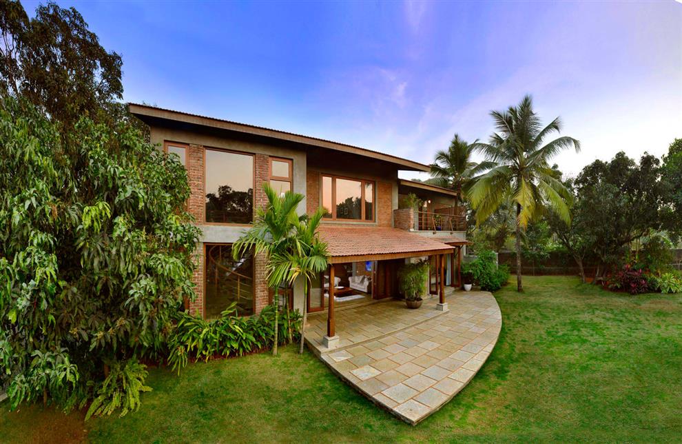 Semi-open verandah, with a vernacular feel to its design, opens up to the garden on the west side.