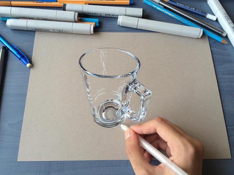 The amazingly talented young chap, totally self-taught, uses graphite pencils and various assorted pens to create his wonderful 3D drawings. Though he started drawing and painting at an early age, he took to serious drawing about six years ago – when he started making sketches of celebrities.