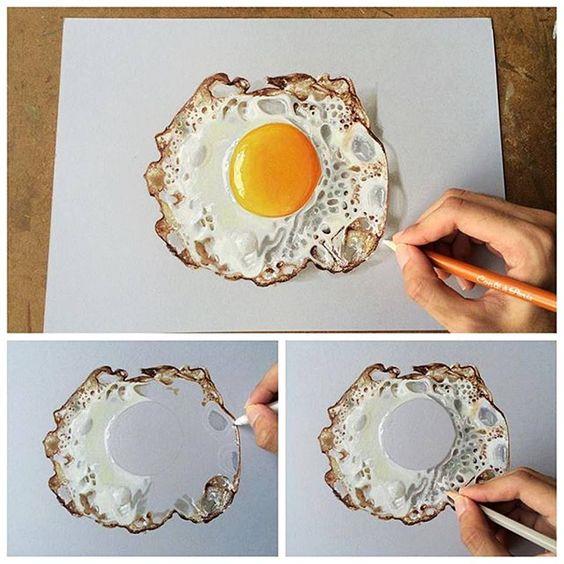 Want a fried egg – sunny side up? Grab the fork and the knife next to it and dig into its delightful golden yolk and the crispy white! But wait – ask if it is served up by Sushant Rane – and you will have to think twice! Because the egg is not real….nor is the knife and fork! That is his ‘hyper-realistic 3-D’ art!!