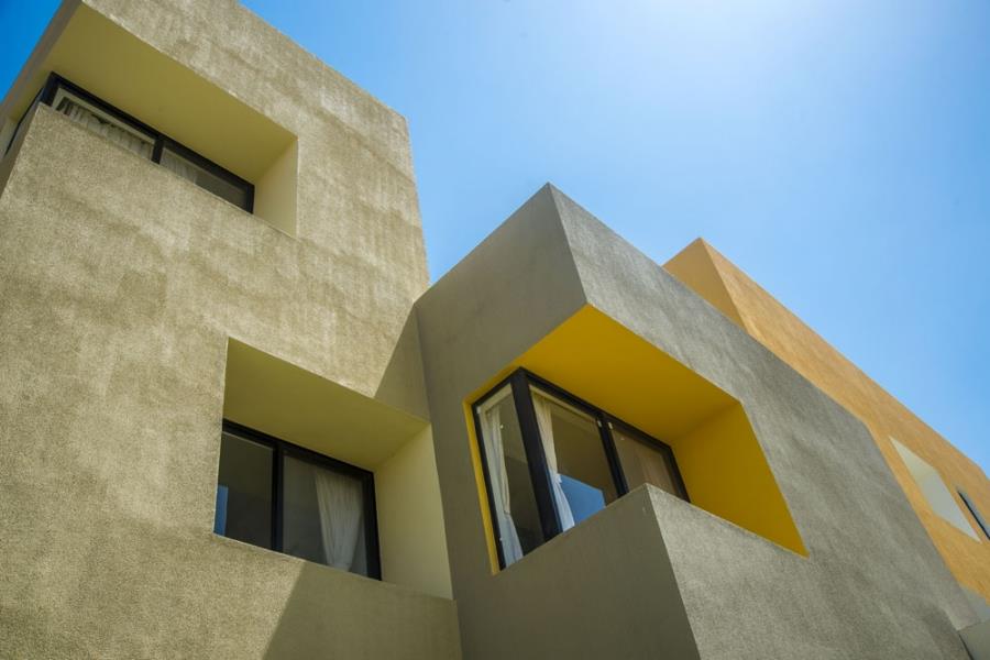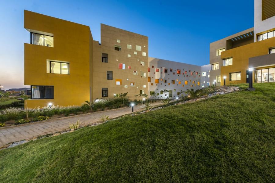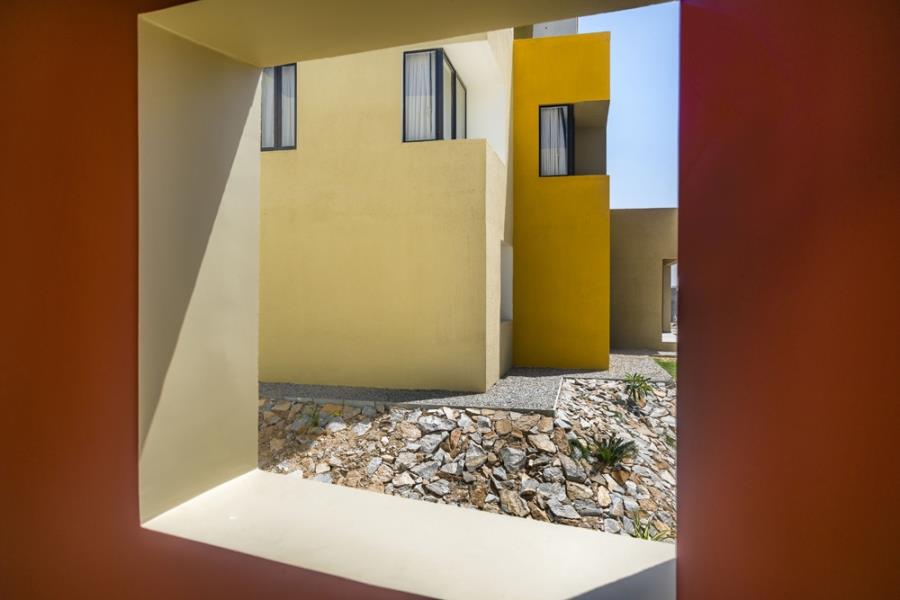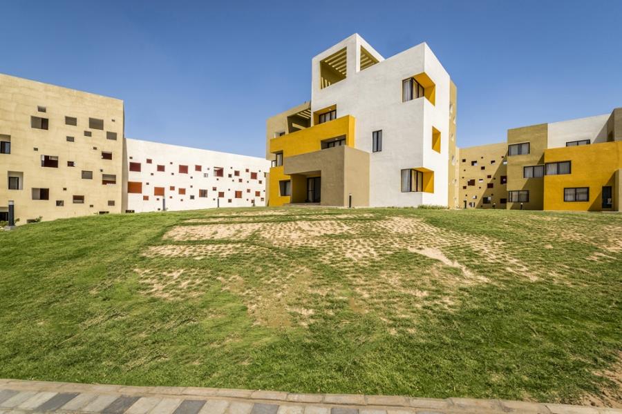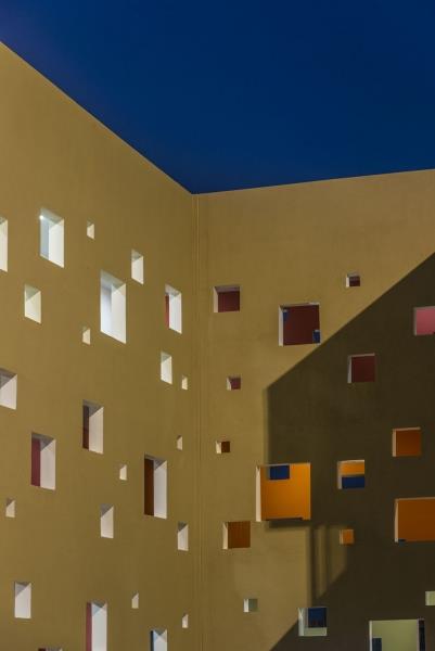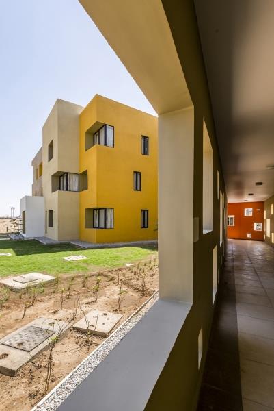The colour palette used for the housing scheme is probably the most significant part of its visual impact. The deconstructed cubes sport varied hues of the sandy region, of the sky and the earth; at different times of the day – visually differentiating the stepped, recessed volumes as well as identifying circulation spaces. With lighter hues on external walls to reflect heat off the surfaces, and darker tones indoors to create a cooler feel, they add impact to the highly ‘responsive’ design solution.