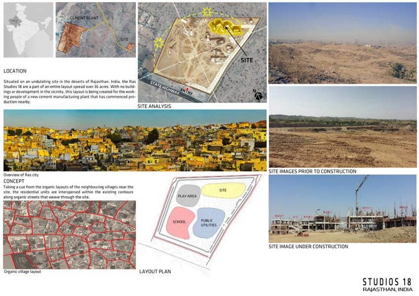 Studios 18 is a housing facility for the staff and guests of a new cement factory in Ras, Rajasthan! Located on an undulating site in the desert, Studios 18 is a part of a layout spread over 36 acres - being developed by the architect’s studio!
