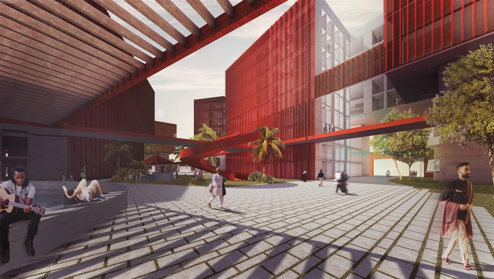 The fertile lands of Punjab gave a holistic approach to the design concept where the architecture of a grand new-fangled university grounds is to deem the entire campus as a landscape and to design the unpretentious with style and respect for the place and existing construction. Creating a strong visual link, making the structures look like one house as it was originally intended, whereby rather than remaining as a detached space, the design caters and maximises the circulation of the overall campus route with simultaneously inducing and expanding nature to form rocky heights and dappled valleys.