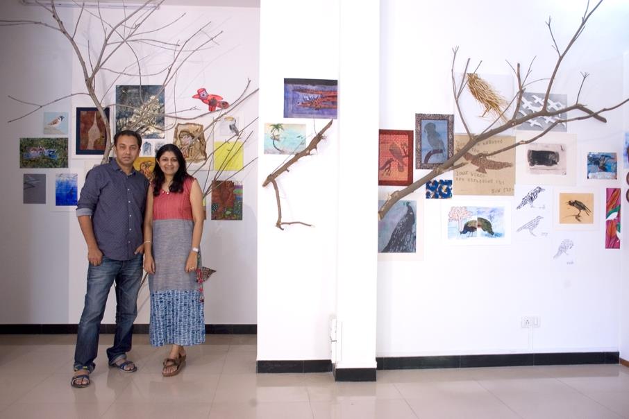 ‘Open Studio’ is an artists’ collective operating from the vibrant, energetic and liberating artistic biome in Gujarat’s acknowledged cultural capital, Vadodara, offering an equal and ‘open’ platform for artists to share their art and experiences. Led by artist couple Heeral Trivedi and Arunanshu Chowdhury (img 1), its activities include workshops, seminars, art shows, informal discussions and any other form of sharing among participating artists and the public alike. Inspired by the recurrent appearance of birds, those enviably winged free-spirited creatures, in works of artists past, present and (hopefully) future, Open Studio conducted a 4 day show of works by around 100 participating artists from all over the country themed around the winged spirits, called the ‘Bird Project’ in March this year. The proceeds from sales at this much appreciated and well received show were donated to V Care, an NGO working for animal and bird welfare. As part of the current ‘Endangered Species Awareness Week’, TFOD takes the opportunity to highlight this example of the art fraternity’s endeavour to raise awareness about the earth’s varied life forms.