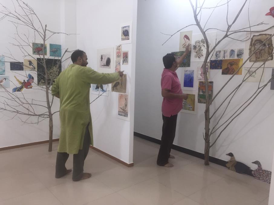 A range of these and other emotions, concepts and ideas have been expressed in the sketches, paintings, sculptures and installations of artists like Yaswant Deshmukh, Kiyomi Talaulicar, Venkatesh Pate, Sujiet Poddar from Mumbai; Ajay and Vinita Sharma, well known miniature artists from Jaipur; Indrapramit Roy, Sashidharan, B.V. Suresh, some of the senior Baroda Fine Arts Faculty members, many local artists like Uday Mondal, Sajal Sarkar, Ekta Singha, Kim Kyoungae, Lavanya Mani, Arunanshu and Heeral at the Bird Project art display.