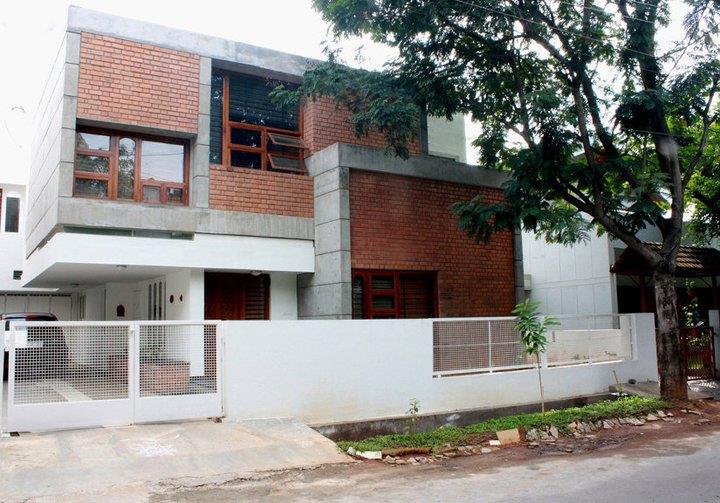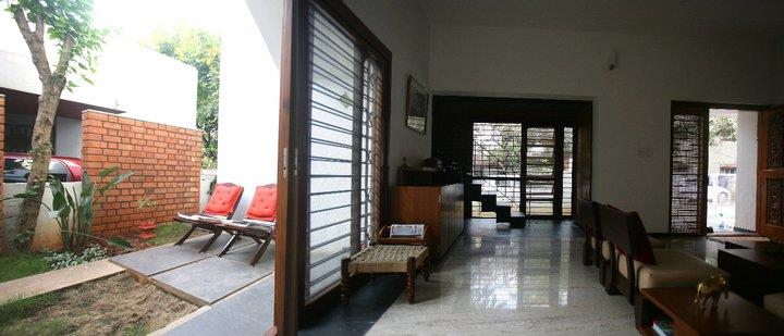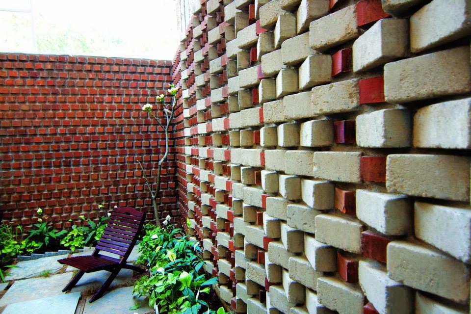 Their project, Sharma House, is a modern day and age take on an age old concept of Vastushastra with an adaptive reuse of the existing structure. In its existing condition the house was too close to the neighbouring houses blocking all the natural sunlight. So they began with decluttering and get natural light inside keeping in mind the vastu pre-requisites. They managed to create a lively open to sky intimate space outdoors. They also reused all the doors and windows. This project is a beautiful amalgamation of brick and concrete.