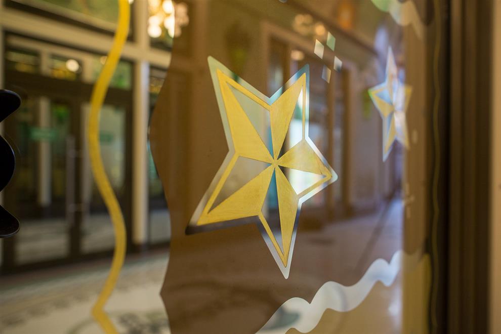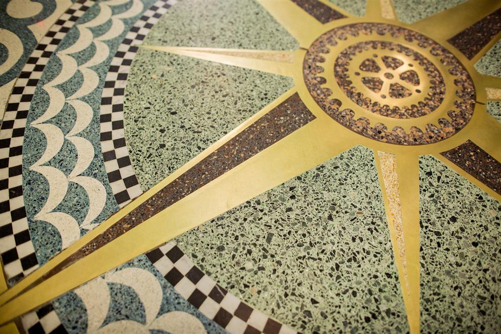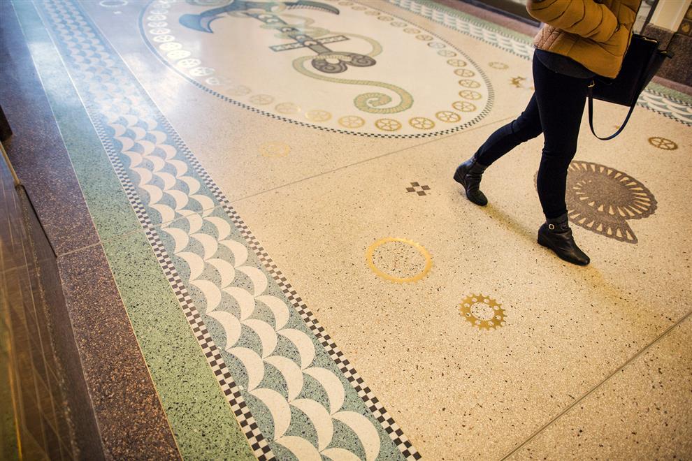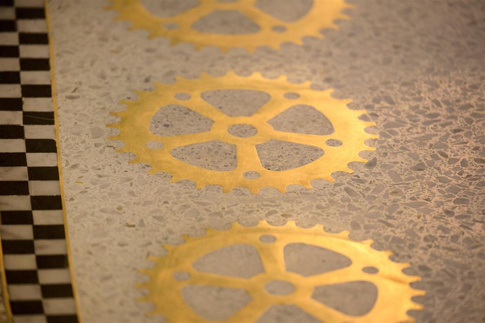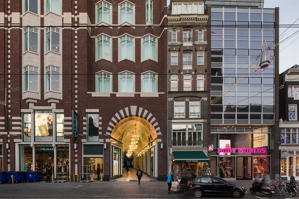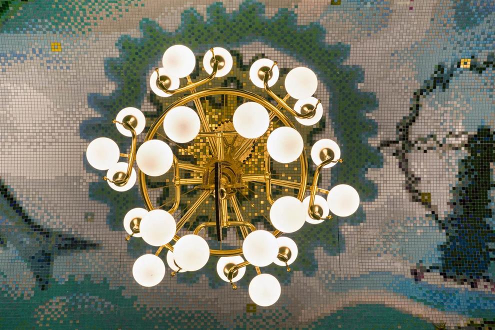 The lighting in the passageway is uniquely designed too! Seven chandeliers in three different styles: two large ones (named ‘Rembrandt’), one middle size (the ‘Vermeer’), and four smaller ones (named after ‘Ferdinand Bol’) are made of recycled bicycle parts, such as gears, head lamps, and handlebars – in tribute to the Dutch tradition of cycling. Besides this, fourteen three-dimensional stained glass lamps are installed, which are inspired by classic portal lamps, still seen in the entrances of Amsterdam’s canal houses.