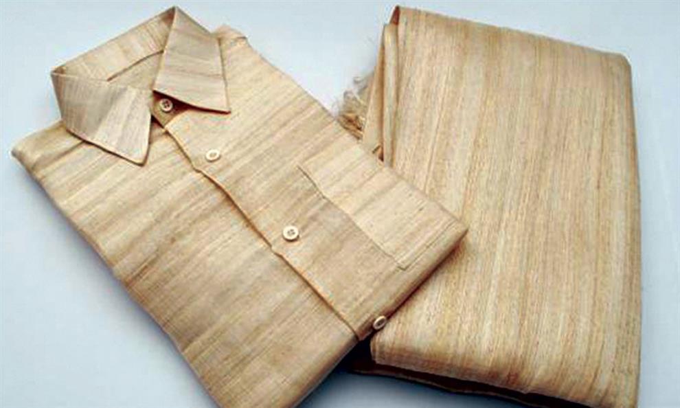 Banana fabric, or jusi, was a very popular material, before cotton took its place, especially in Asian countries. Different layers of the stem was used for different purpose, inner layer being the finest was used for sarees and kimonos. Research indicates, 37kg of banana stems can produce 1 kg of fabric. Instead of wasting this potential of banana stems, the eco textile company, Offset warehouse, has partnered with an NGO in Nepal for banana fabric production. The resulting fabric is almost carbon neutral and suitable for jackets, skirts and trousers. The NGO ensures that the workers get paid appropriately and operate in safe human conditions.