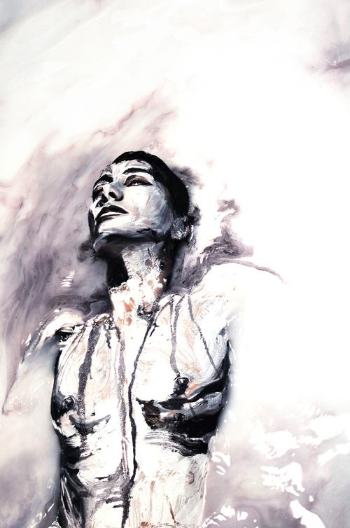About the process for her portraits, Alexa says she likes to paint as much of the background and clothes as she can before the day of the final painting and photo session. “I can spend 2-5 days painting the walls, floors, and props used in a full body portrait. Painting clothes can take 1-4 hours depending on the extensiveness of the drapery and any patterned print. I need to paint the clothes on a stand-in model's body in order to effectively capture the shadows of the drapery. On the day of painting the final portrait, my real model puts on the pre-painted clothes and I just paint the face and exposed skin. I like to minimize the time my model has to pose during the painting session so that when it's comes to the photography, the model feels more lively and engaged.”