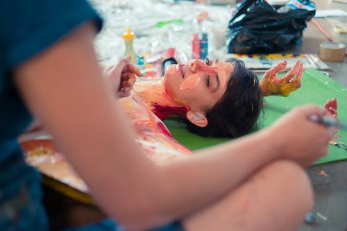 Born in Washington D.C. in 1986, Alexa has a B.A. in Political Science. However, a natural flair for art had seen her taking painting and sculpture classes at school, which explains her understanding of scale and dimensions – but of course she had never before used the human body as her canvas! “Before I first painted on the human body, I hadn’t practiced painting for almost six years. But when the idea formed in my mind - I wanted to see what it would look like to put black paint down on shadows. Soon it evolved to painting all the colors as they existed in a 3d space on top of themselves. I realized that by painting in this style, I was able to seemingly collapse depth, making the entire scene, humans and all, appear to be a 2d painting.”