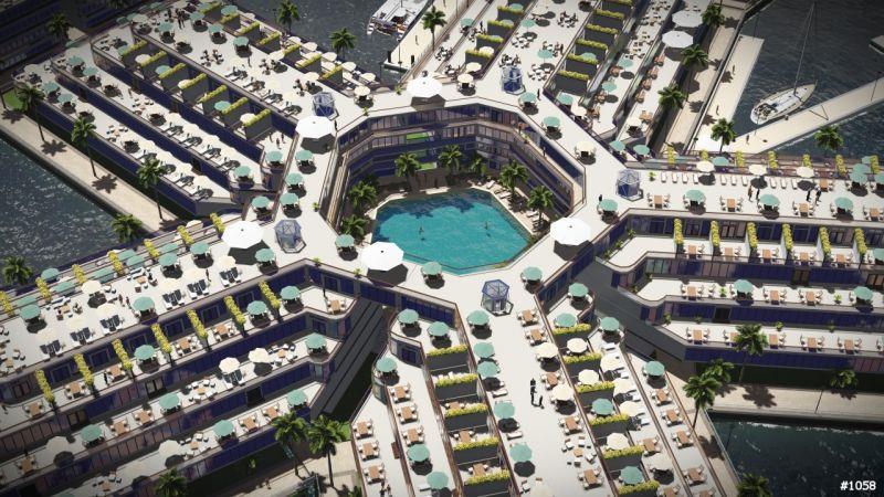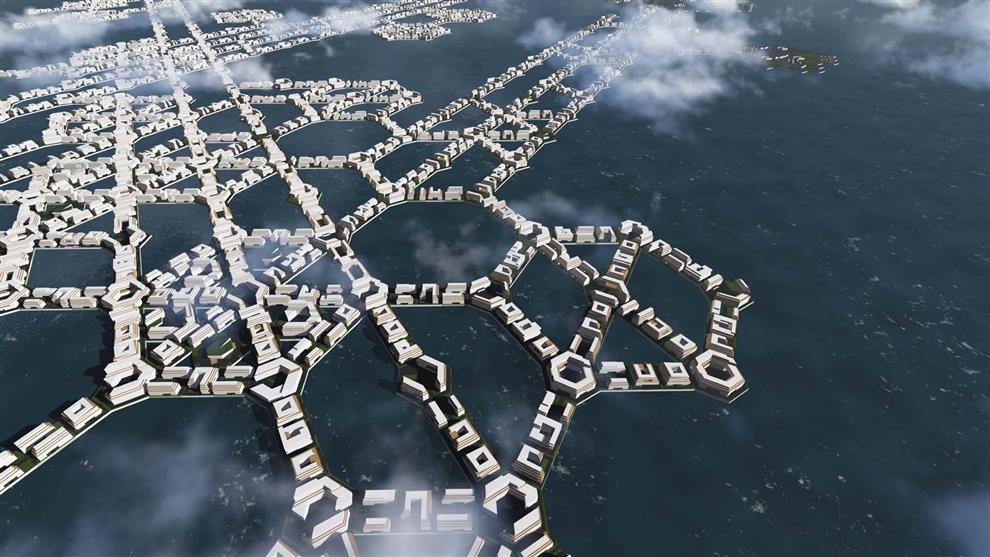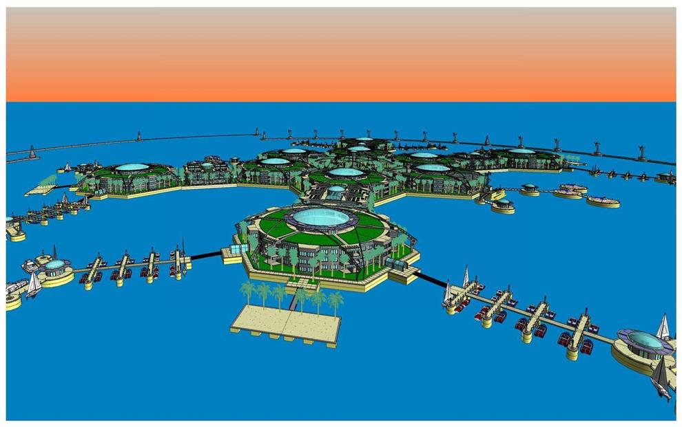 Having already crowd-funded the design project in alliance with the co-founder of Paypal and surveyed potential customers for their requirements and specifications, the Seasteading Institute has partnered with the Dutch aquatic urban design firm, DeltasSync, to engineer an architectural seastead design. Reinforced Concrete has been finalised a s the strongest, most economical and sustainable material for building the square and pentagonal hollow block platform modules which will have 50 m sides and will be 50 m in height. These modules once floated can be joined like the pieces of a jigsaw in different patterned combination according to the requirement. On these platforms will be erected the elements of the city which are a maximum of three storeys high residential and commercial buildings, apartments, terraced housing, office space and hotels as well as open green spaces and aquaculture farms. Protection from storms and high waves is provided by the really high platform height and its potential to bob up and down riding on waves, aided by stabilisers and wave breakers placed around. These wave breakers are also expected to harness energy from the waves and contribute to the colossal amount of alternative energy like solar and hydroelectricity proposed to be produced on the seastead, making it completely fuel-free. The preliminary concept for the pilot project in the waters near Tahiti completed by DeltaSync is of 11 such modules with an estimated project cost of $167 million.