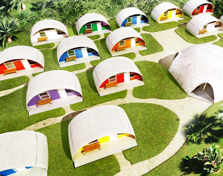 A concept pioneered by architect Dr. Dante Bini, with the view of rethinking construction to make buildings safer, greener and more affordable - Binishells have the potential of chnaging the way future architects think design! It was the first time that air pressure was used to lift and shape reinforced concrete shell structures. The technology was further enhanced by his son, architect Nicolo Bini. Today it has found application in various kinds of construction, ranging from residential, to schools, gymnasiums, commercial buildings, low cost housing, emergency shelters, storage and various other typologies.