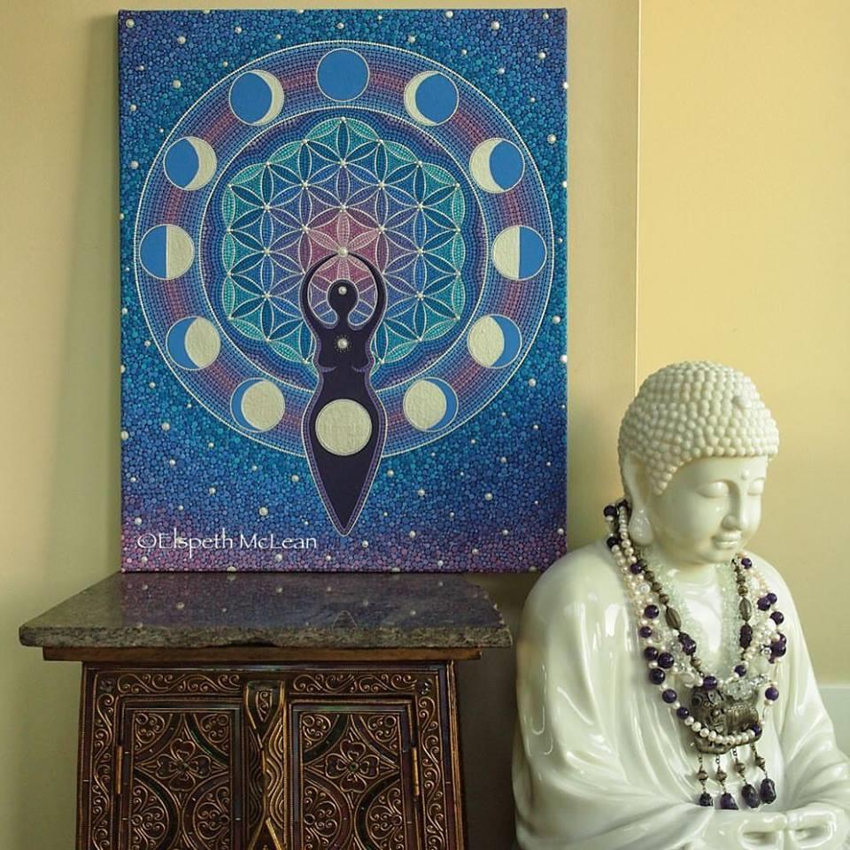 It is this reverence that basically reflects in Espleth’s art; manifesting as a higher connect, with deeply spiritual undertones. Besides indigenous Australian art, which has sacred, mystic connotations, Elspeth has been touched deeply by Hindu/Buddhist traditions too. The popular deities Ganesha and Buddha have also woven their way into Elspeth’s consciousness. In her Facebook post where she has shared the image with the Ganesha, she writes: “As I'm creating plans and dreams for 2017 my old fears, anxieties and insecurities are surfacing. I always learn so much from facing them- but oh my- growing pains hurt! My little Ganesha statue has been a source of grounding and comfort for me. As the Hindu patron of the arts he is best known as a remover of obstacles. And there are sometimes no greater obstacles than the ones found within ourselves. So to anyone out there facing their inner shadows right now I hope this image can bring you some peace and comfort- you're not alone.”