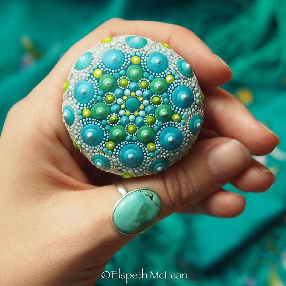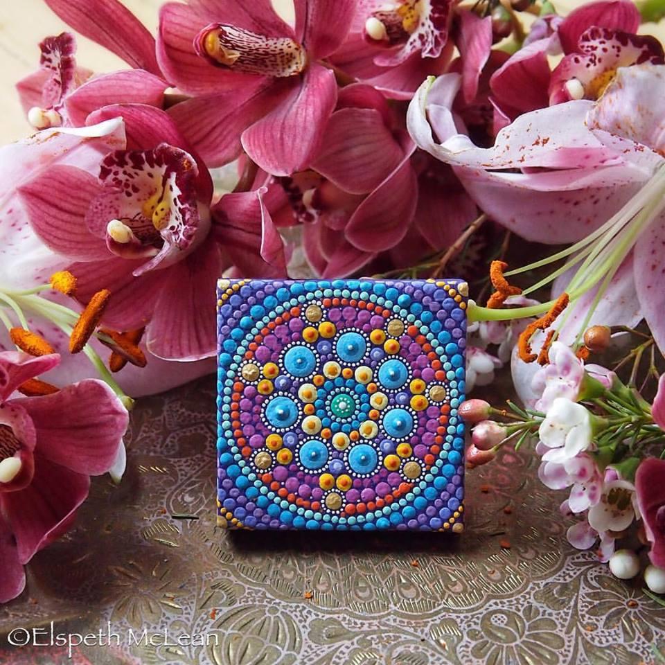 One also assumes she must be getting very attached to the beautiful paintings she so painstakingly renders, the Mandala stones, the pendants - and it all must be pretty hard to part with. “The answer is mostly yes,” admits Elspeth. “When I first started selling my art 12 years ago it was really hard to let things go. Then I would see the joy and appreciation in my customers’ eyes and remember - this is why I do what I do - to share colour, joy and happiness. Not to keep it all to myself. Some pieces are harder to let go of than others, of course. The harmony in these colours lifts me up so much but my art becomes even more special when someone else and their loved ones enjoy it.”