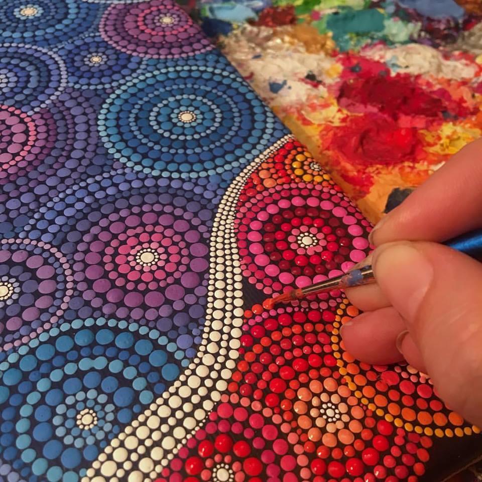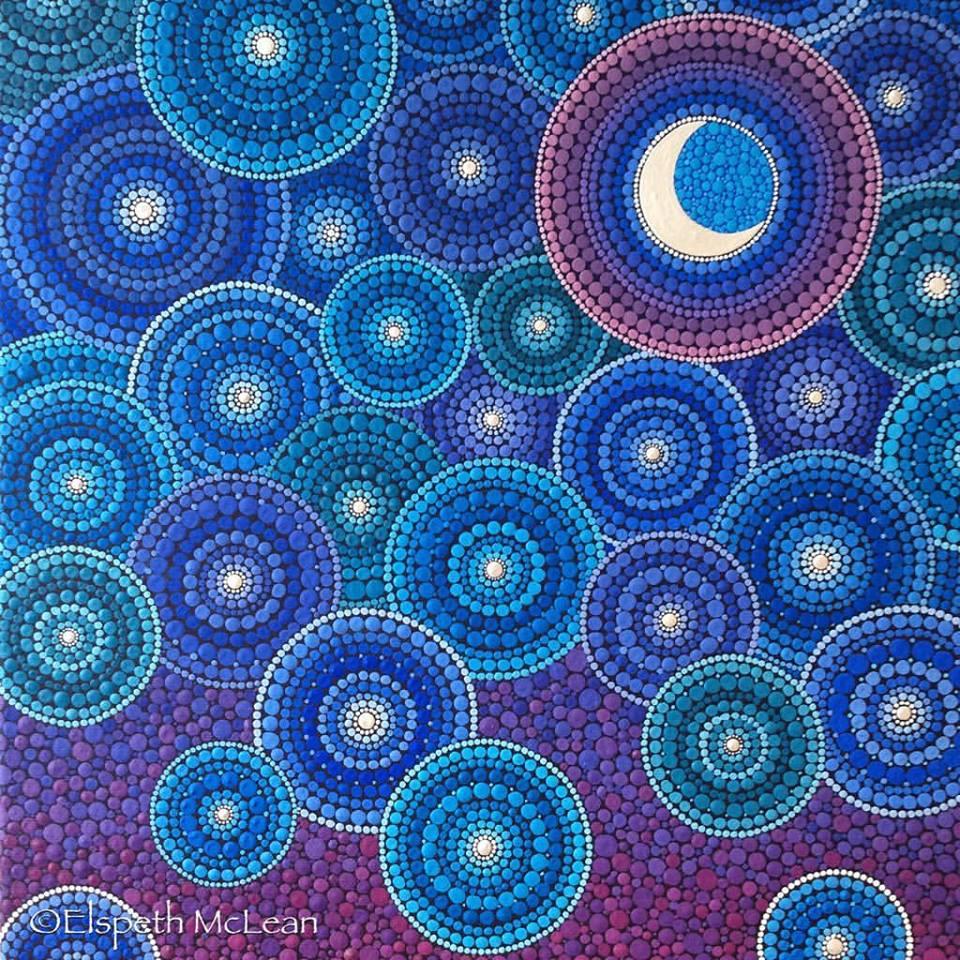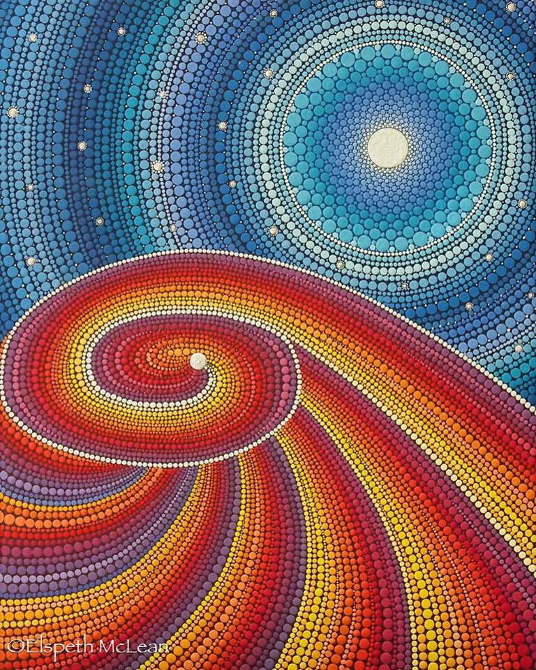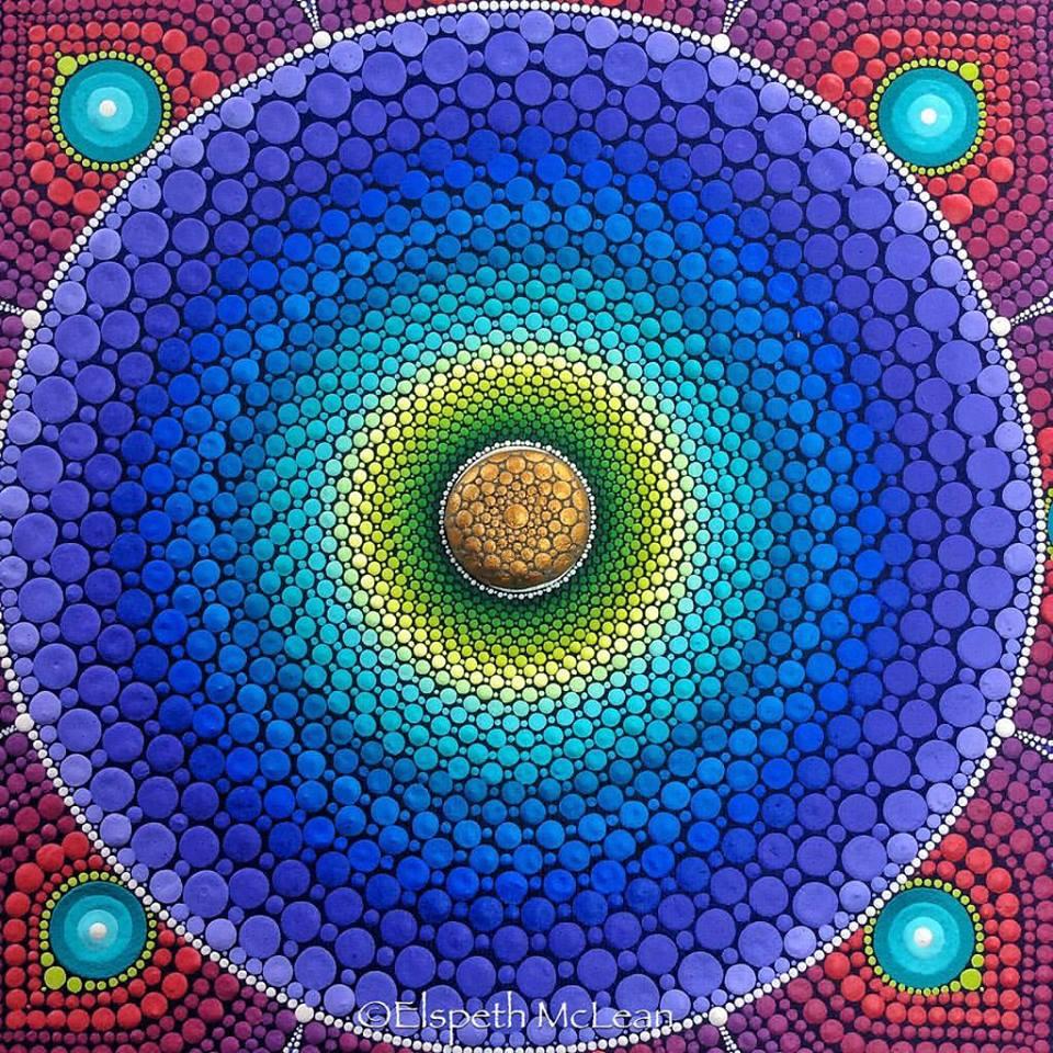 Of course nothing can take away from the fact that her art – inspired or otherwise, and her artistic style which she now calls “Dottilism” – is mind-blowing! For Elspeth, painting dots is a meditative, grounding and highly enjoyable experience. Having dedicated her life to her Dottilism, she hopes to “connect people with their inner child and to bring some vibrancy and joy to their lives.”