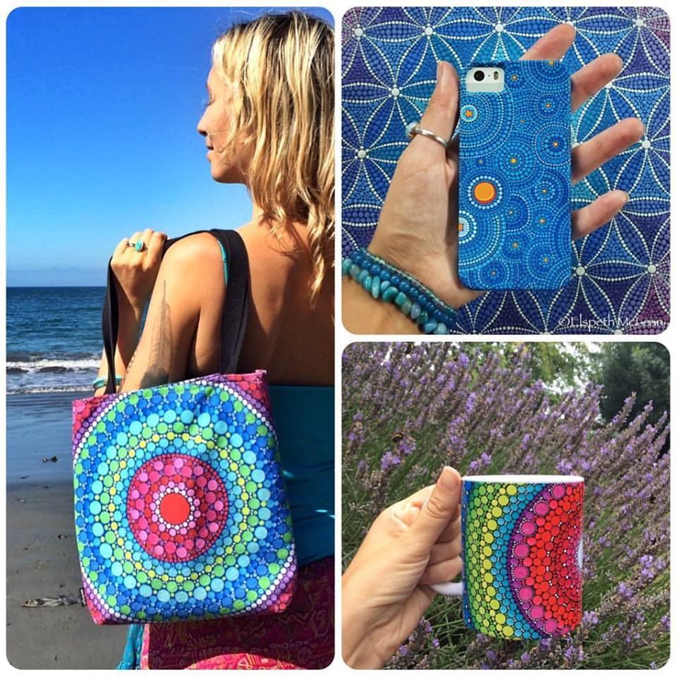 Over time, Elspeth has started recreating the Mandalas on various objects and thus her Mandalas can be seen printed on a wonderful range of affordable, fun, funky and functional items such as mugs, cushion covers, bags, phone cases, stickers and more.