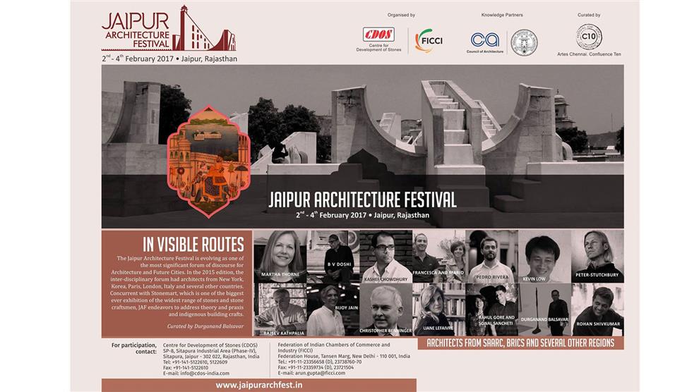 The Jaipur Architecture Festival has been a good platform for new ideas, celebration, discourse, contemplation and exploration. It returned for the second year, with the theme of “In Visible Routes”, an intentional wordplay meant to vocalise the idea of a multicultural collaboration and its evolvement in the past. The event was held from 2nd February to 4th February, to align with the ninth India Stone Mart 2017, which is the largest international stone exhibition in India, exhibiting a wide range of stones, stone products, tools, machinery, state-of-art stone technologies and rare building craft traditions.
