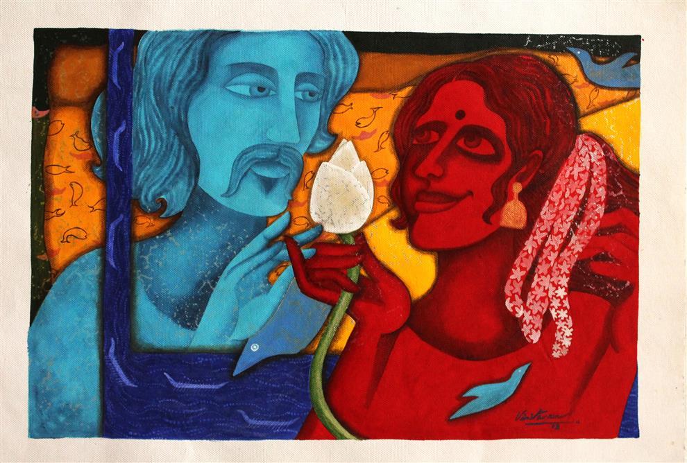 In a career spanning over a decade, self-taught artist Vinita Vasu has dabbled in myriad types of paintings, across varied media. She paints her thoughts on walls, on fabrics, on canvas, paper, fiber-glass, on bottles and boards, and even on pebbles and stones. Born in Kerala, and brought up in Delhi, – Vasu’s art encompasses the same diversity. Right from childhood, Vinita had an inclination towards art, topping all art competitions she participated in, during her school years. However, despite best efforts, she could not pursue a degree in fine art education.