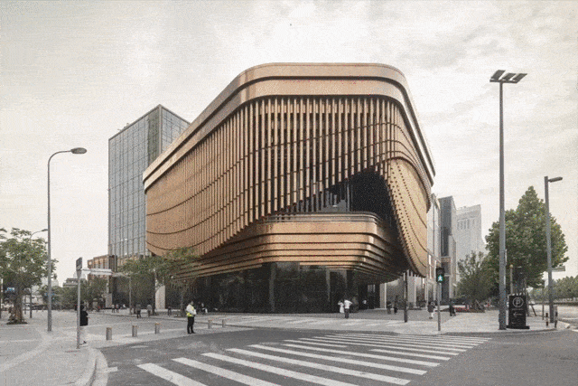 Other than the grand stage for live performances, this 4000 sq. m. multi-level art and culture building has spaces for exhibitions, displays and other events, including one on its roof-top. The entire mixed development district itself, with eight buildings consisting of banks, retail spaces, boutique hotel and restaurants, has been planned along the Huangpu river front in Shanghai, at the mouth of the Bund Street that connects the new city with old Shanghai.