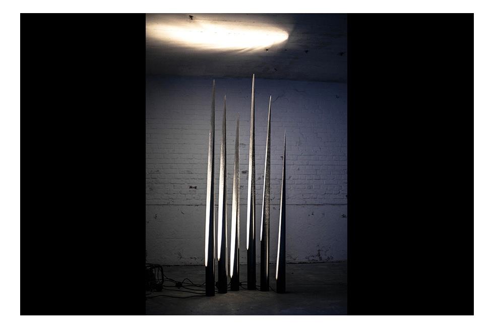 Named after the popular card game, this light fixture is a set of, not cards, but six steel and fibreglass wedge-like sticks standing in a cluster. Designed by Belgian Designer Pol Quadens, the slim light rays emitted by through sliced off elliptical diagonal fibreglass sections almost magically connect to cast a circular halo of light on the ceiling! Well, that’s seriously playful!