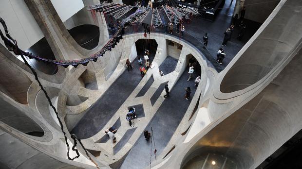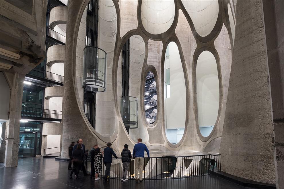 Having thus achieved a spectacular central interactive space, the bordering silos have then been cut back up to their perimeter to build in five floors housing 80 galleries usable for temporary and permanent displays and six research centres spread over 6000 square metres. The museum also provides for a state of the art storage and conservation centre, library and reading rooms, bookshop and restaurant; along with these will be centres for a costume Institute, photography, curatorial excellence, the Moving Image, performative practice and art education. A major portion of the displays will come from the private African art collection of Jochen Zeitz, former CEO of the sports brand Puma and an African art enthusiast, after whom the museum is also named. When questioned about the degree of access and democracy this museum will have for the African people given the private and corporate nature of its resources, Zeitz is claimed to have dismissed the doubts saying that “It is not his or the Waterfront’s museum – it’s for Africa.”