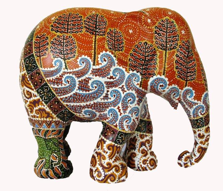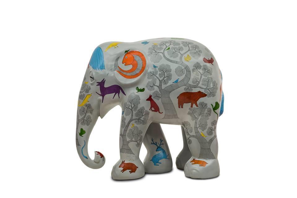 Then there is Adivasi artist and recent Padma Shri winner Bhajju Shyam who has created a delightful elephant using the Gond style (tribal art of Madhya Pradesh). “Adivasis are often blamed for the destruction of forests, but they take only what they need to survive, no more. I wanted to present the natural harmony of the forest and hence have shown all creatures being carried to safety aboard this elephant,” he says.