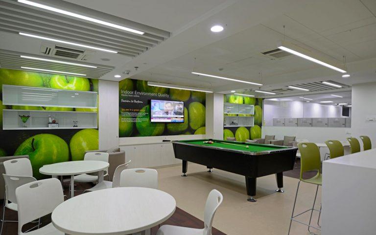 Offices like Google, Swatch, Skype, Facebook, have ensured that their culture is made imminently apparent through the look of their interiors. Google has a slide instead of a stairway. One of the biggest draws is the recreation or breakaway space where team members get to interact and mingle with co-workers over something other than work. Some have game consoles and pool tables and some are like Infosys which has an actual bowling alley on the premises.