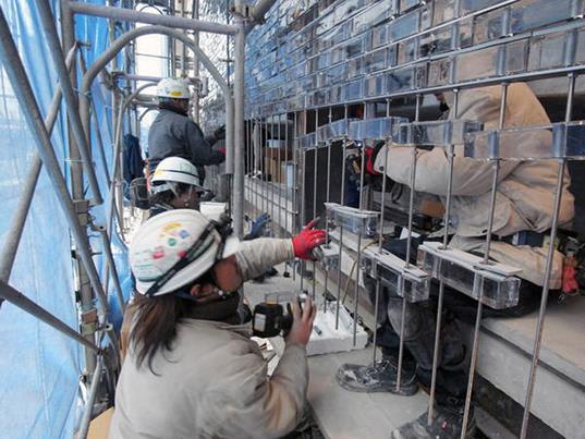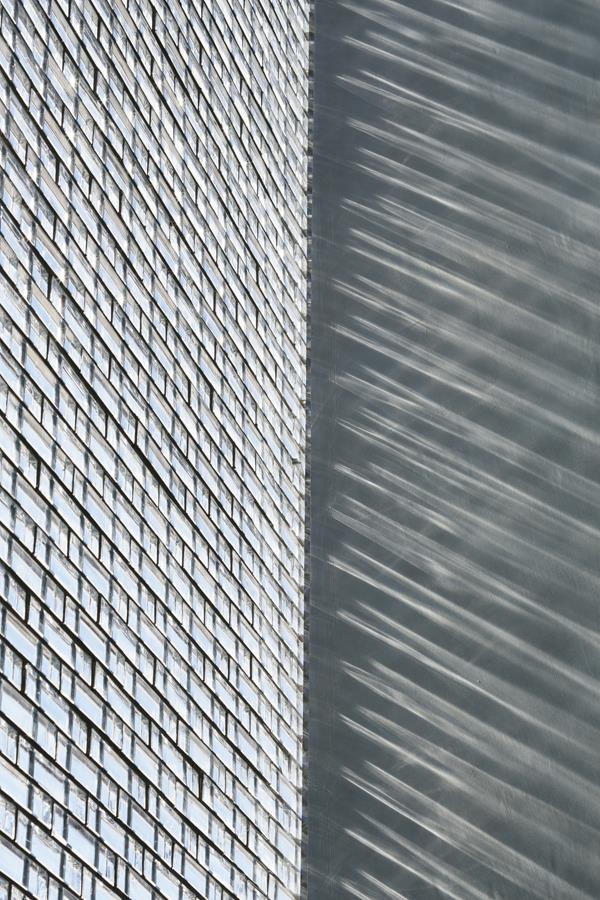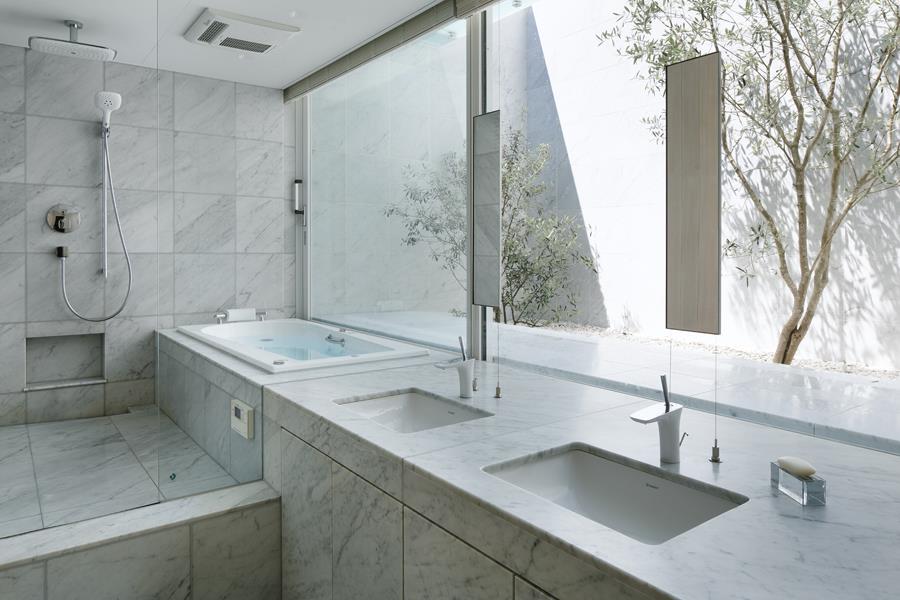 Nudged by the homeowners to find a solution to the problem of noise from the busy city street full of cars, buses and trams that the house is located on, Nakamura and team turned to glass bricks for insulation. A wall of 8.6 m x 8.6 m glass bricks, made from optically transparent Borosilicate, forms the home’s façade from the first floor upwards, above the semi-basement which accommodates a garage and a glazed entrance foyer to the stairs leading to the rest of the house. This wall has been specially engineered by ‘stringing’ 6000 glass bricks in columns through steel bars suspended from a beam, which was in turn strengthened by pre-tensioned steel bars, with flat steel plates strung at intervals along with the glass bricks to handle lateral stresses. This resultant marvelous glass façade numbs out the external noises to create an oasis of serenity inside despite maintaining a visual connection with the action of the street outside.