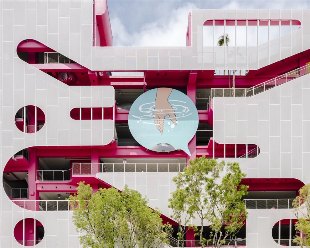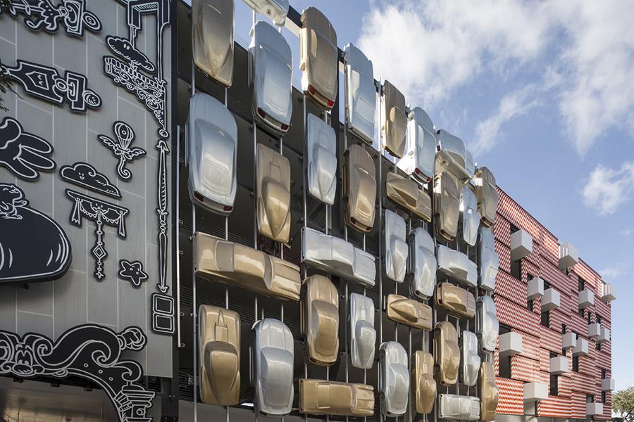 What an eclectic mash! And yet, it is stunningly, eye-catchingly pleasing, this architectural version of Exquisite Corpse. The very thought that city administrators and developers were game to this experiment and trusted five different studios and their fabricators to match up to such crazy expectations with such fantastic deliveries is mind-blowing. And, what can one say about the idea of using the parking structure’s exterior to showcase a variety of talent?