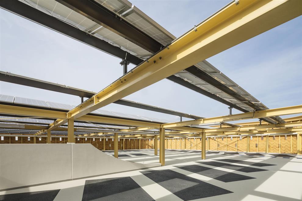 This dreamy castle is packed with state-of-the-art technology whether it comes to its parking function or its eco-friendliness and sustainability. A whopping 800 sq meters of solar panels generate alternative energy to light up the space and run its tech. While the lights are all energy efficient LED, they light up only on sensing activity. The efficient routing system of vehicles inside ensures minimal venting of exhaust fumes from them. What’s more, cars can be charged while they’re parked at the 28 charging points provided. The building also embraces nature in its warm wrap with a hanging garden adorning one of its sides and turrets or perforations in its brick façade offering resting space to native birds!