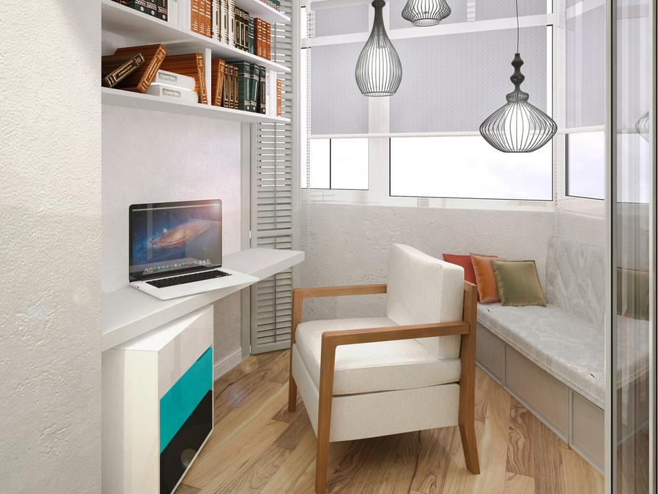Large windows that welcome the sun can be the real protagonists lighting up the décor when the space is small, like this home office fitted into a little room, which hardly feels little thanks to the choice of colours and details in the décor. The well-thought coupling of minimal furniture with an overtly tall potted plant in this sun-lit balcony office (group image 8) makes it feel like working in a forest, doesn’t it? What about this neat arrangement in a grey balcony (group image 9) with delicate sheer curtains and perforated screen walls? Cool, I think!