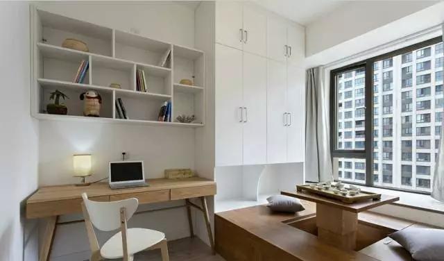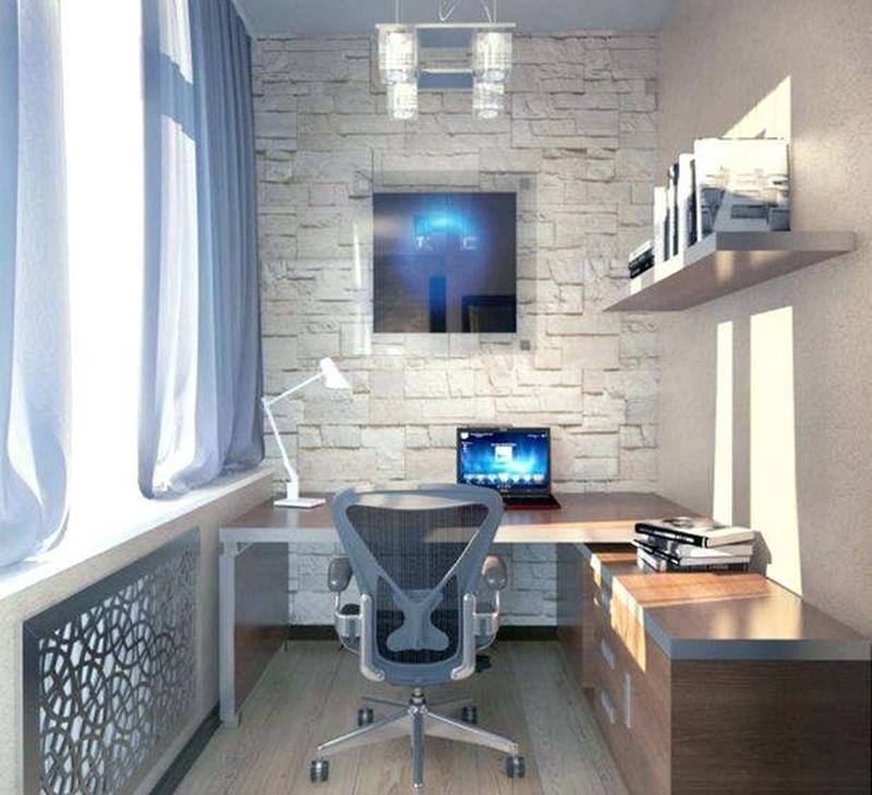 Large windows that welcome the sun can be the real protagonists lighting up the décor when the space is small, like this home office fitted into a little room, which hardly feels little thanks to the choice of colours and details in the décor. The well-thought out coupling of minimal furniture with an overtly tall potted plant in this sun-lit balcony office (group image 8) makes it feel like working in a forest, doesn’t it? What about this neat arrangement in a grey balcony (group image 9) with delicate sheer curtains and perforated screen walls? Cool, I think!