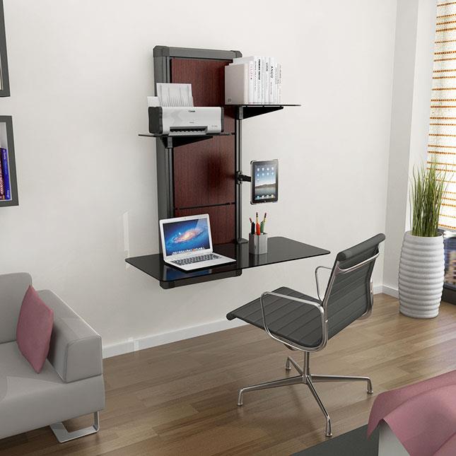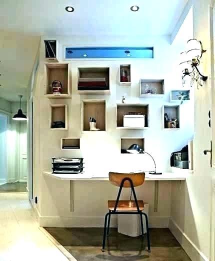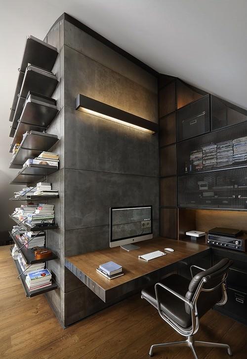 Single floor apartments or flats usually allow us only a small part of a room, like a dining area in this case, where the long looping storage shelves do add flavour to an otherwise simple arrangement. In the other case, a niche between the dining area and kitchen has been well used to neatly fit in two workstations along with shelving. One could even go DIY with a commercially available wall-mounted workstation as seen here (group image 1) to set up a compact work-space.