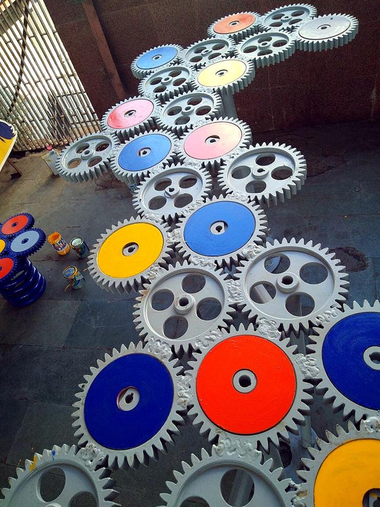 The entire project, from the concept, ideation, prototyping, to collecting the scrap, making it, and finally installing it, took 6 months. Most of the metal from the scrap material was kept in its original form to be identifiable as a recycled product; only ‘new’ additions were the welding rods and paint.