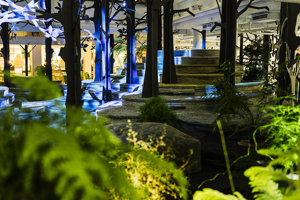 No, it’s not an office in the forest; it’s a forest in the office. A complete forest on an undulating terrain has leafy canopies casting shadows on the rocky-grassy stream-side. It sounds like a romantic picnic, but it’s the office of King, the makers of Candy Crush and other games, in Stockholm. While most of the offices of King worldwide are known for their exuberant fun and fantasy themed décor, nothing quite compares to this one. Designers Adolfsson & Partners have really explored the frontiers of décor to simulate nature with materials and technology to create a life-like wood in this workspace.