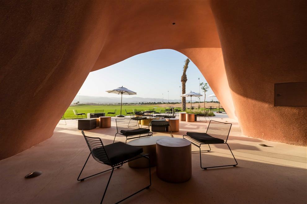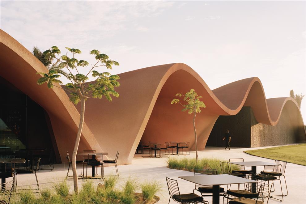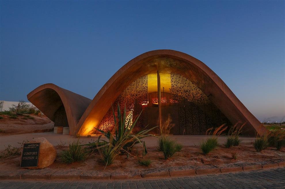 The wavy scape of this clubhouse undulates in harmony with the desert’s rolling sand dunes and becomes one with them. Design architects Oppenheim have drawn inspiration from the dunes of the desert and the Bedouin tents that dot this sandy expanse, as well as the local Jordanian heritage of traditional built forms to create this charming piece of architecture.