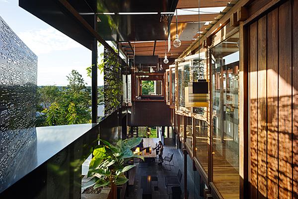 Cox Rayner Architect's intention of the Left-Over-Space House in Paddington, Australia was to demonstrate what can be achieved with a myriad of left-over space, similar to the awkward space that is left over in inner cities. In this case, the space was a recycled caretaker's cottage. The building has been renovated to accommodate a family house for parents and two kids. The forward portion is a single level study room for architectural practice, or if later to be used by a new owner, a potential small office. The former cottage is opened up to form a conduit to the rear portion, also comprising the dining space. The site embodies the mantra of making every little bit count- the house is a true testament of what can actually be done with left-over spaces at home. Natural timber and steel have been used as primary materials extensively in the construction of the home. The new house is spread out over the landscape, thus making it the perfect example of seamless indoor-outdoor living.