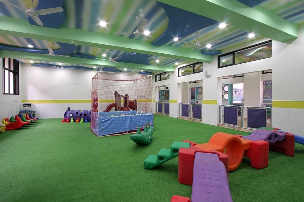 This floor earmarked for the kindergarten level kids is located at Goregaon. Our team was briefed to design the interiors keeping in mind the effervescent psychology of children. The flooring of classroom is in beech wood, whereas the play area is in artificial grass turf to make it child friendly. The classrooms are made more playful with subtle combination of pastel colors creating a mystic and fairytale-like background. The resulting ambience is attractive to the students.