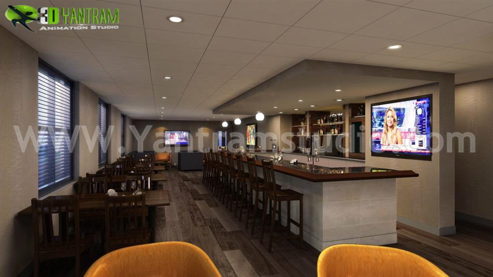 Restaurant Lounge And Bar View Interior Design Rendering Dining Hall Room
