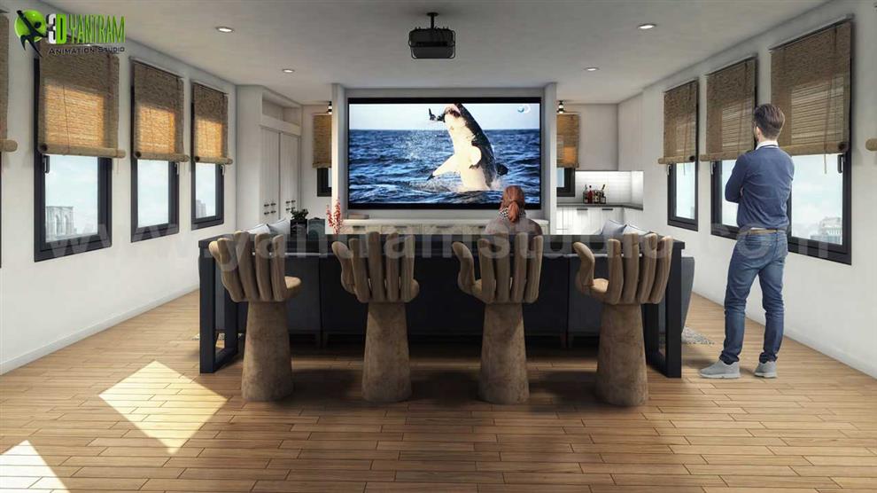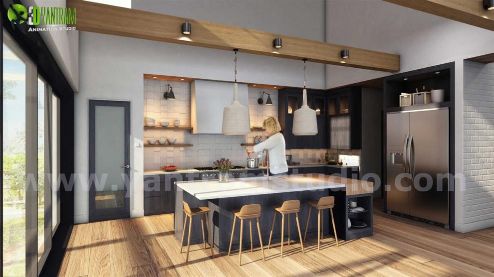 Advanced Living room-Kitchen by 3D interior design studio, San Diego, California