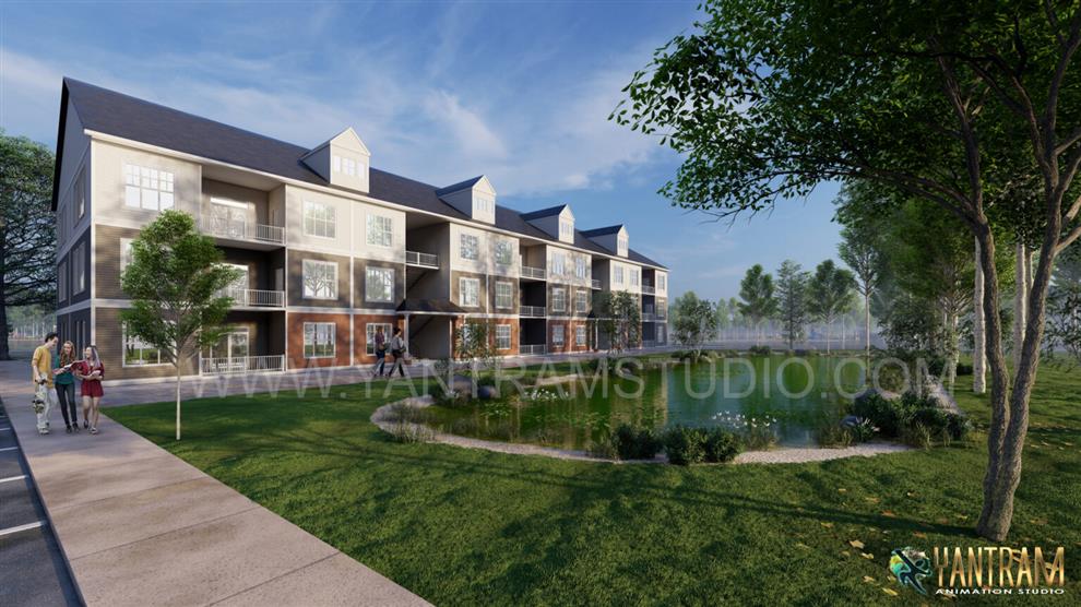 Exterior Rendering Services to Elegant Residential Apartment by Yantram 3d Archi