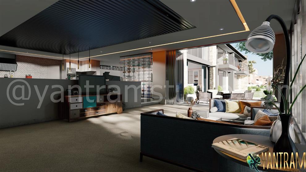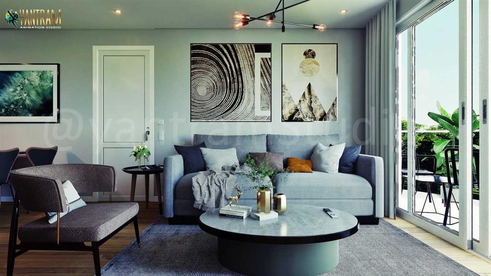 3D Interior Visualization Of Great Livingroom in New York city by Yantram 3D Int