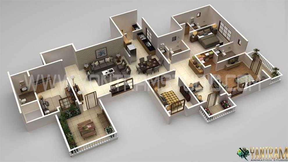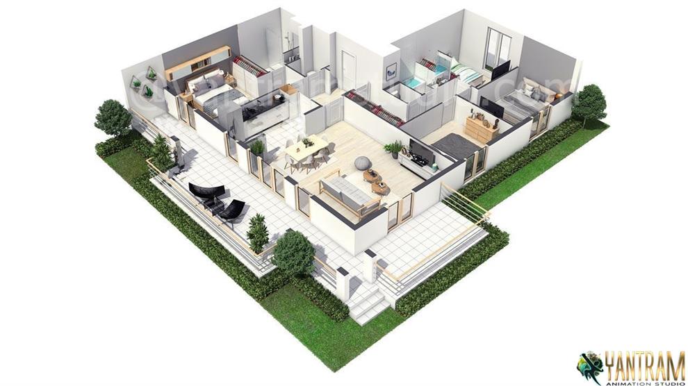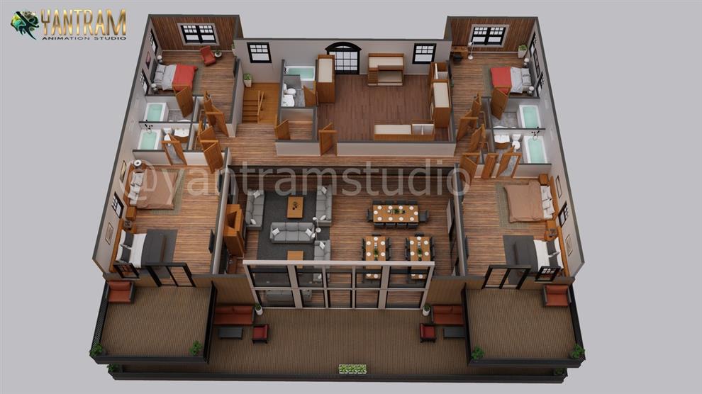 3D Floor Plan Rendering Proffered for House in California by 3D Animation Studio