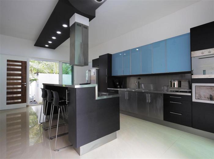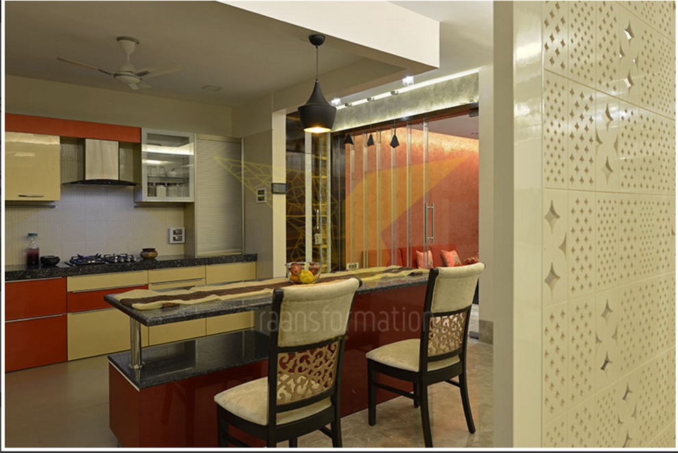 In homes where space is not a constraint, the formal dining area is kept separate and a small breakfast bar is included in the kitchen; for convenience.
