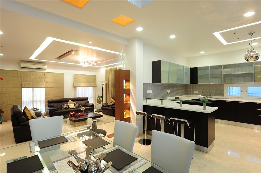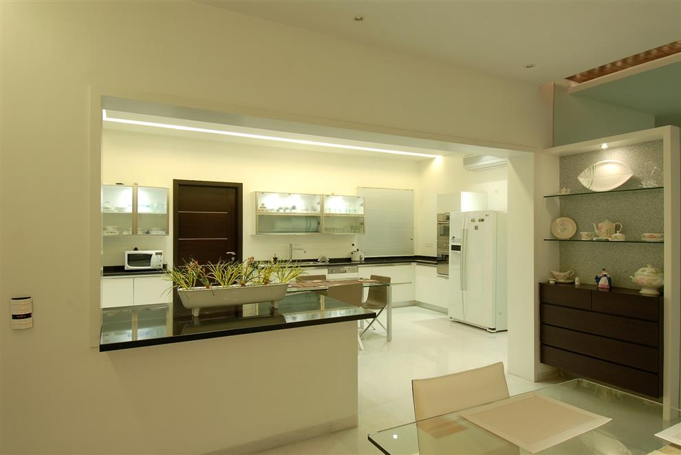 In homes where space is not a constraint, the formal dining area is kept separate and a small breakfast bar is included in the kitchen; for convenience.
