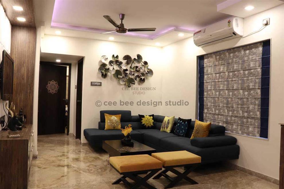 A typical Indian living room may contain furnishings such as a sofa, chairs, centre tables, and bookshelves, electric lamps and rugs.
