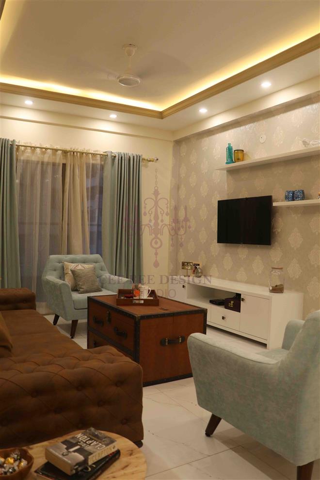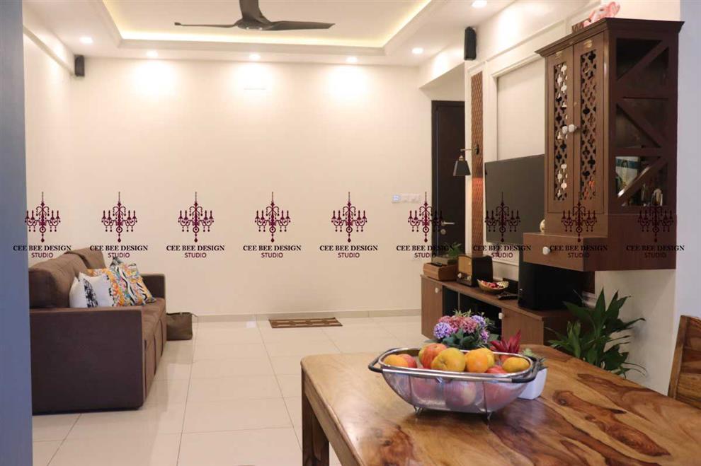 Often the dining area is a physical extension of the living area, and thus the room is aesthetically treated as one. Also most living rooms in India are equipped with a television.