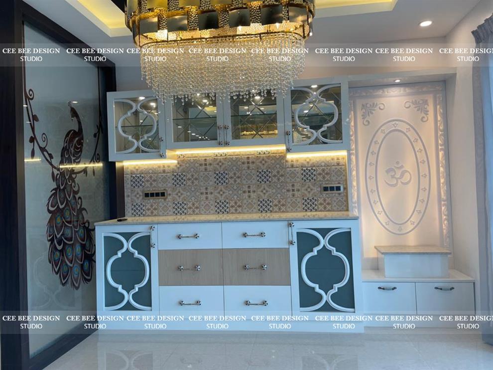 Often the dining area is a physical extension of the living area, and thus the room is aesthetically treated as one. Also most living rooms in India are equipped with a television.