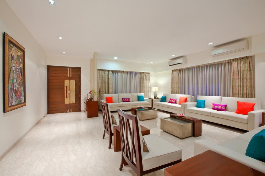 A typical Indian living room may contain furnishings such as a sofa, chairs, centre tables, and bookshelves, electric lamps and rugs.